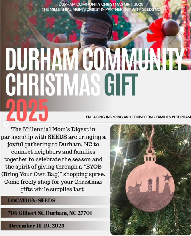 The event will be held on December 18th and December 19th at SEEDS in Durham, NC, bringing together residents, volunteers, and local organizations to share resources, hope, and holiday joy.